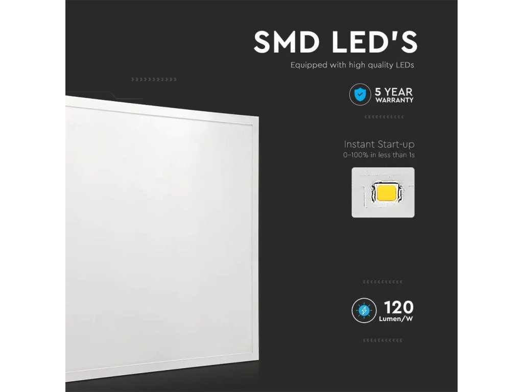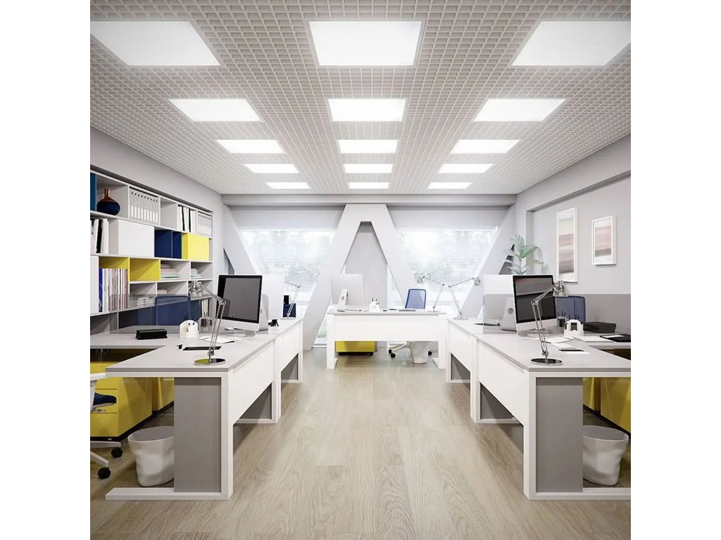 Tieto panely s backlit technológiou majú rovnomerné osvetlenie bez tieňov a ich univerzálne rozmery 60×60 cm (595×595 mm) sa hodia do kazetových stropov alebo na povrchovú montáž (s rámom).