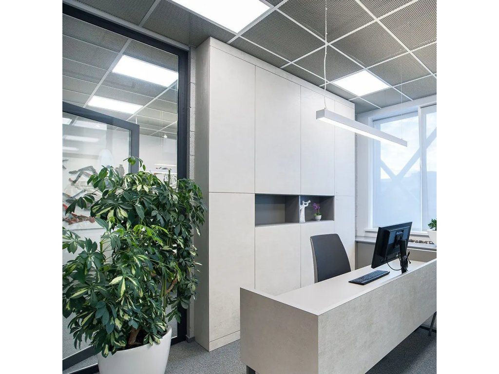 Sada 8 ks LED panelov 36W (595×595 mm) prináša moderné a úsporné osvetlenie s vysokou svietivosťou 4320 lm na panel (120 lm/W). Farebná teplota 4000K zabezpečuje príjemné denné biele svetlo vhodné pre prácu aj relax.