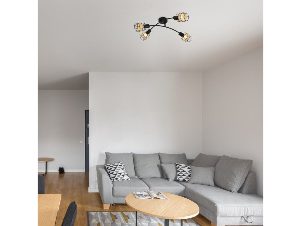 Industriálne bodové svietidlo Indiana so štyrmi päticami E14, ideálne pre obývačku, kuchyňu, jedáleň aj spálňu. Čierne prevedenie pre moderný vzhľad.