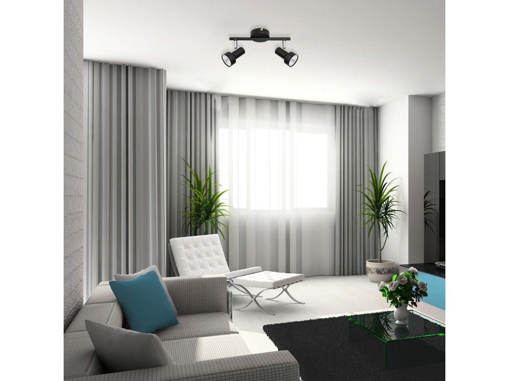 Štandardné čierne bodové svietidlo vhodné do obývačky, spálne alebo pracovnej izby. Pätice GU10 pre dve žiarovky max. 50 W. Trieda ochrany I, krytie IP20.