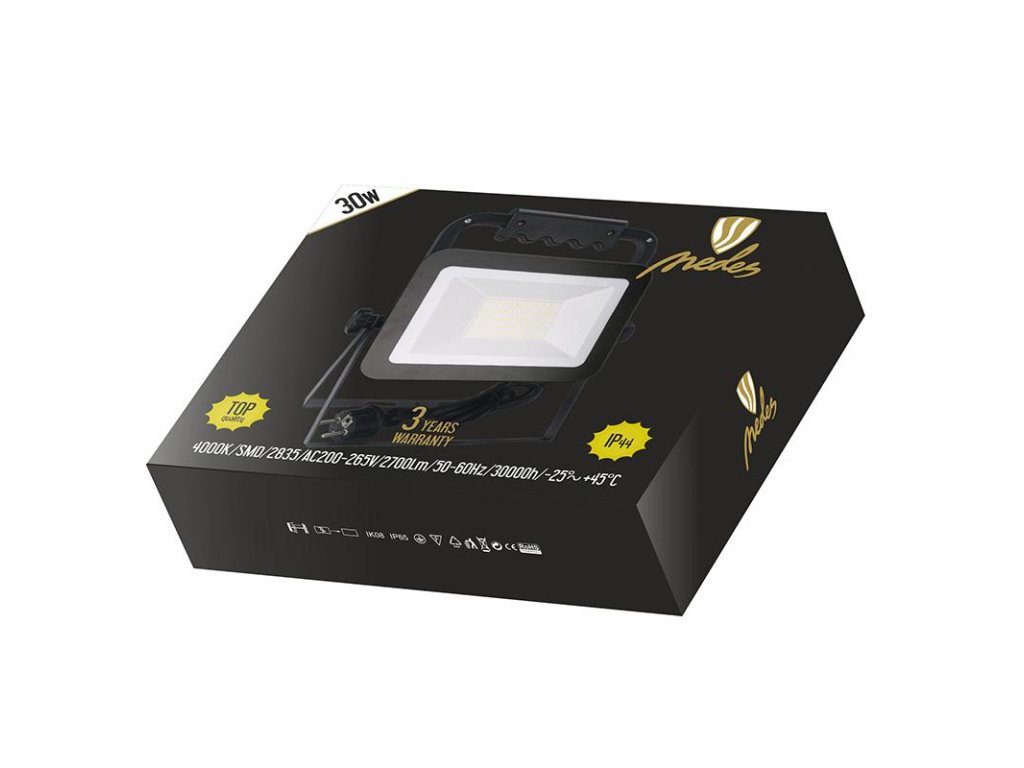 LED HQ reflektor 30W s držiakom / 4000K / BK / H - LF2023H