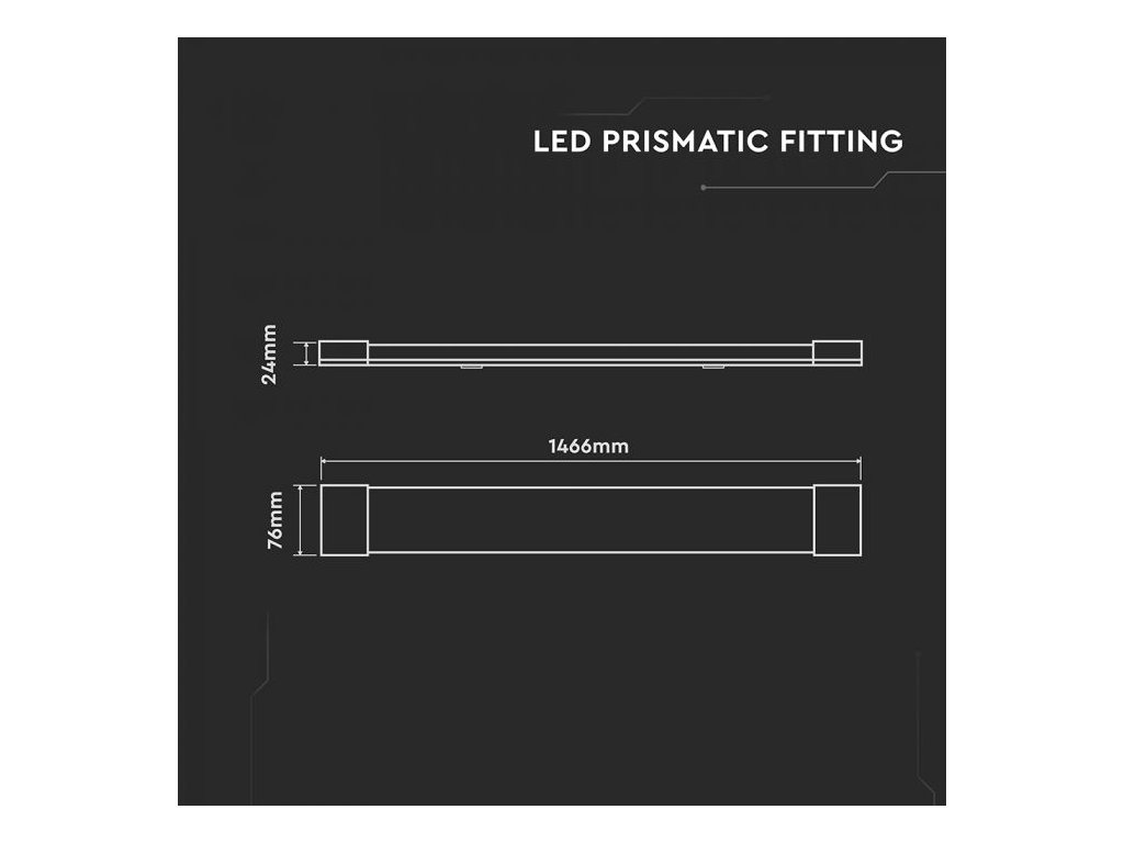 50W LED grill fitting (1466 mm) je moderné lineárne svietidlo s elegantným prizmatickým difúzorom, navrhnuté pre vysokú svetelnú účinnosť až 120 lm/W. Vďaka použitiu SMD-CREE čipov novej generácie dosahuje úsporu energie až 85 % v porovnaní s klasickými svietidlami. Spotrebuje o 50 % menej energie ako tradičné grill fitting osvetlenie, no zároveň poskytuje vysoký výkon a rovnomerné osvetlenie bez blikania.