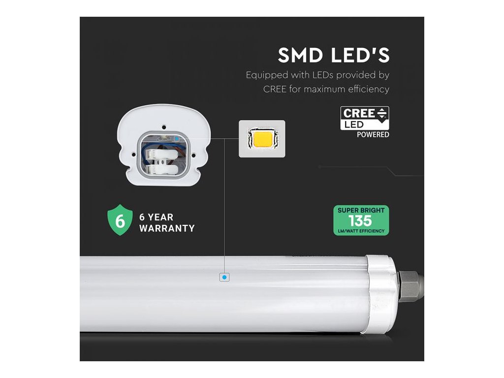 LED lineárne vodeodolné svietidlo 36W, 120cm CREE chip, IP65, 4820lm