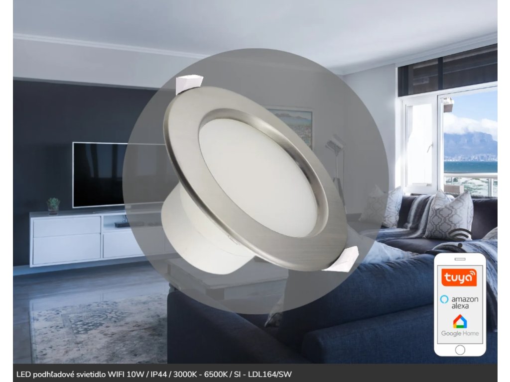 LED podhľadové svietidlo WIFI 10W / IP44 / 3000K - 6500K / SI - LDL164/SW