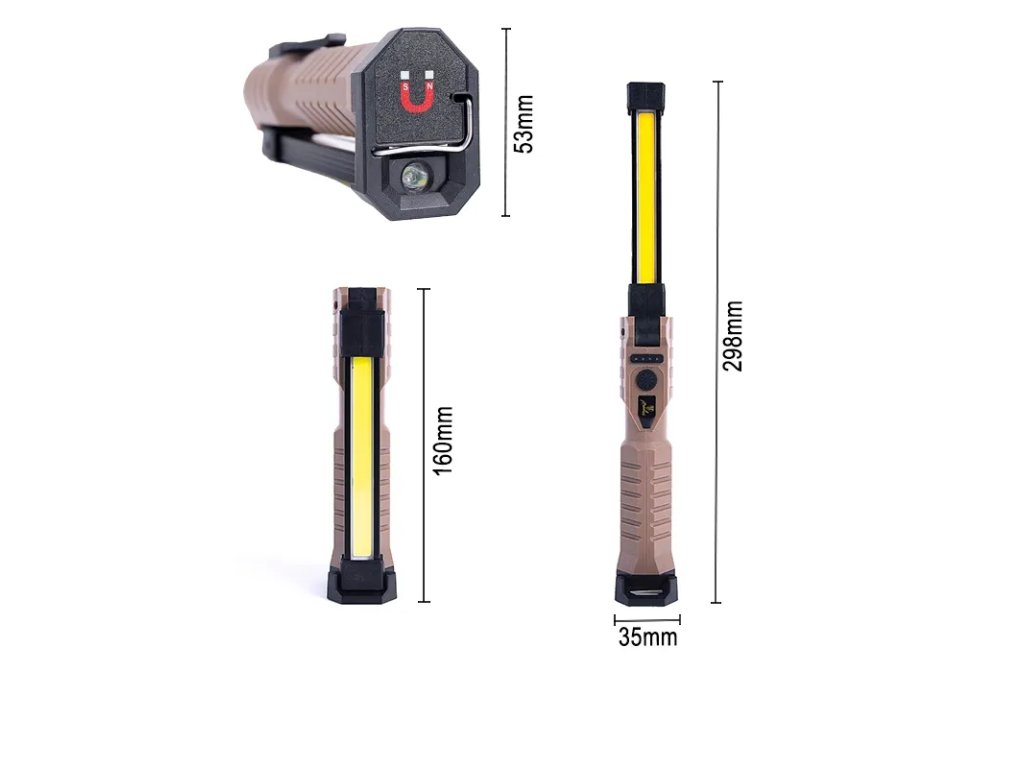 - 100% COB žltá - 310Lm - 6,5h / 25% COB žltá - 70Lm - 14,5h / 100% COB biela - 230Lm - 7h / 20% COB biela - 50Lm - 16h / 100% SMD - 60Lm - 17,5h