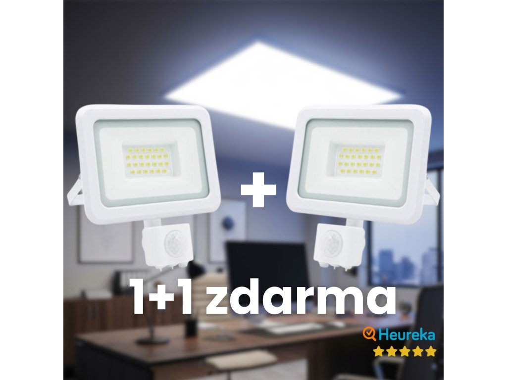 LED reflektor biely s pohybovým PIR senzorom 20W, 4000K | 1 + 1 zdarma