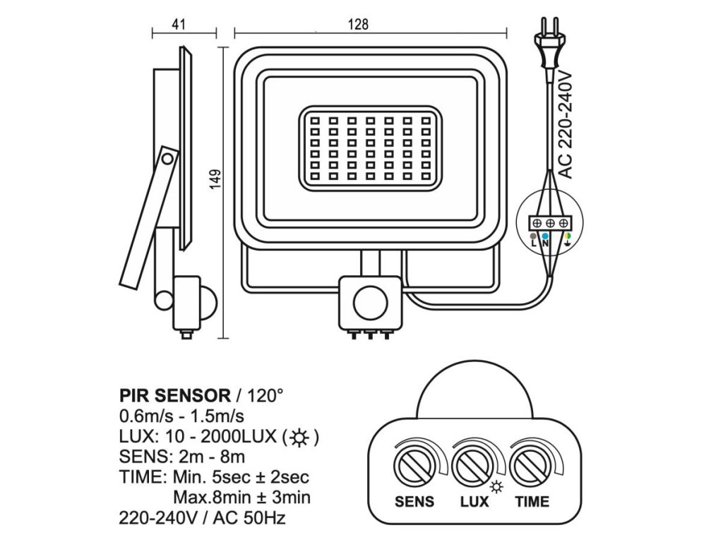 Biely LED reflektor značky NEDES je vybavený citlivým PIR senzorom pohybu, pevným nastaviteľným držiakom a výkonným LED čipom s dlhou životnosťou. Reflektor poskytuje rovnomerné a silné svetlo v neutrálnej bielej farbe 4000K, ktoré je ideálne pre každodenné použitie – jasné, no zároveň príjemné pre oči.