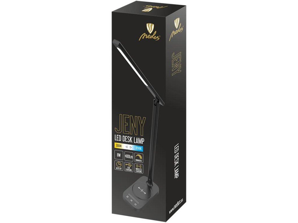 LED stolná lampa JENY stmievateľná s časovačom, bezdrôtovým nabíjaním a USB 8W - DL4305/B