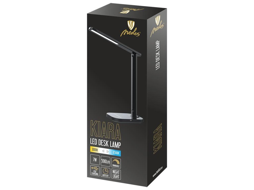 LED stolná lampa KIARA 7W stmievateľná s USB + nočné svetlo + časovač - DL4304/B