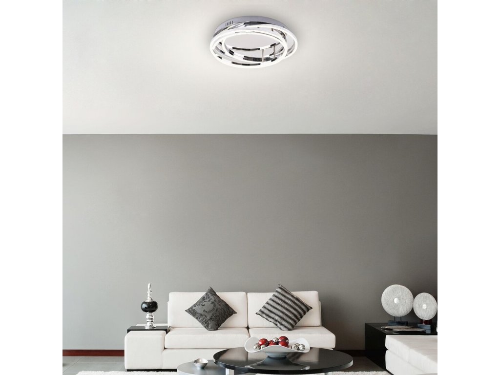 Stropné svietidlo Selena prináša moderný dizajn s kovovým chrómovým telom vhodné do obývačky či pracovnej izby. Vybavené výkonnými LED zdrojmi s celkovým svetelným tokom 3200 lm a prirodzenou bielou farbou svetla (4000 K) poskytuje jasné a príjemné osvetlenie. Svietidlo disponuje možnosťou stmievateľnosti pomocou 3-stupňového stenového spínača, čo umožňuje jednoduché nastavenie intenzity svetla podľa potreby. S životnosťou LED zdrojov až 20 000 hodín a energetickou triedou G je Selena spoľahlivým a úsporným riešením pre každodenné osvetlenie.