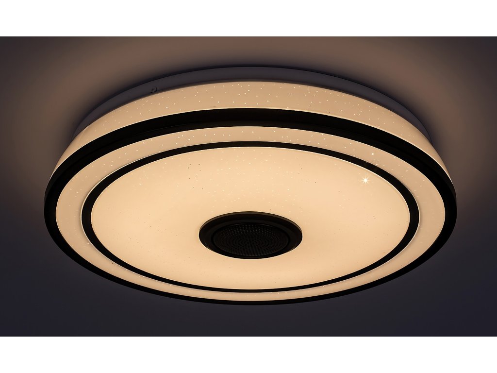 Nikolaus je moderné stropné LED svietidlo ideálne pre obývačku či pracovnú izbu. Ponúka vysoký svetelný tok 1600 lm a nastaviteľnú farebnú teplotu od teplej po studenú bielu (3000–6500 K), vrátane RGB podsvietenia pre atmosféru podľa vašej nálady. Svietidlo je vybavené diaľkovým ovládaním so stmievaním, funkciou pamäte posledného nastavenia, časovačom s nastavením až na 1800 sekúnd a nočnou funkciou. Bluetooth pripojenie umožňuje prehrávanie hudby cez integrovaný reproduktor. Doplnkový hviezdny efekt vytvára príjemnú atmosféru v interiéri. Trieda ochrany I zabezpečuje bezpečné používanie.