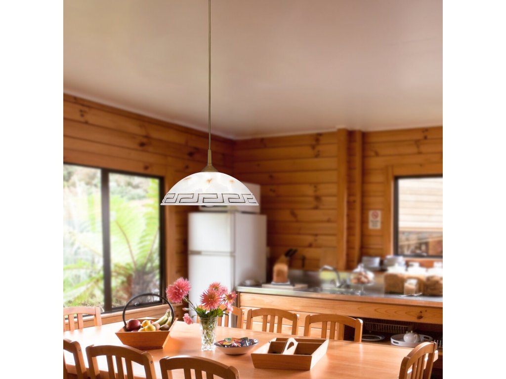 Elegantné závesné svietidlo Etrusco v mediteránnom štýle s bielym alabastrovým tienidlom vhodné do obývačky, jedálne alebo kuchyne. Jednoduchá inštalácia s objímkou E27 a zárukou 5 rokov.