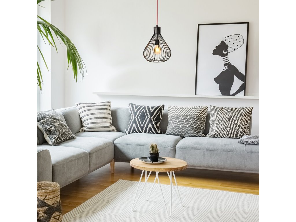 Závesné svietidlo Zille je ideálnym riešením pre moderné interiéry, ktoré preferujú industriálny štýl. Jednoduchý a zároveň efektný dizajn v matnej čiernej farbe dopĺňa pevný textilný kábel, ktorý umožňuje nastaviť výšku zavesenia až do 190 cm.